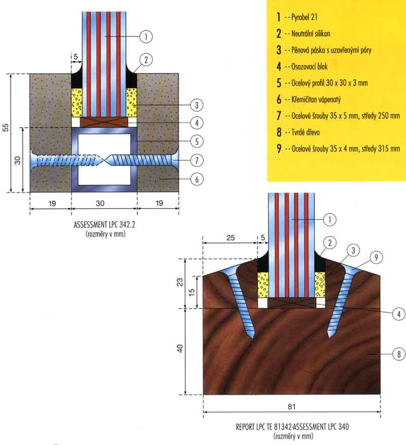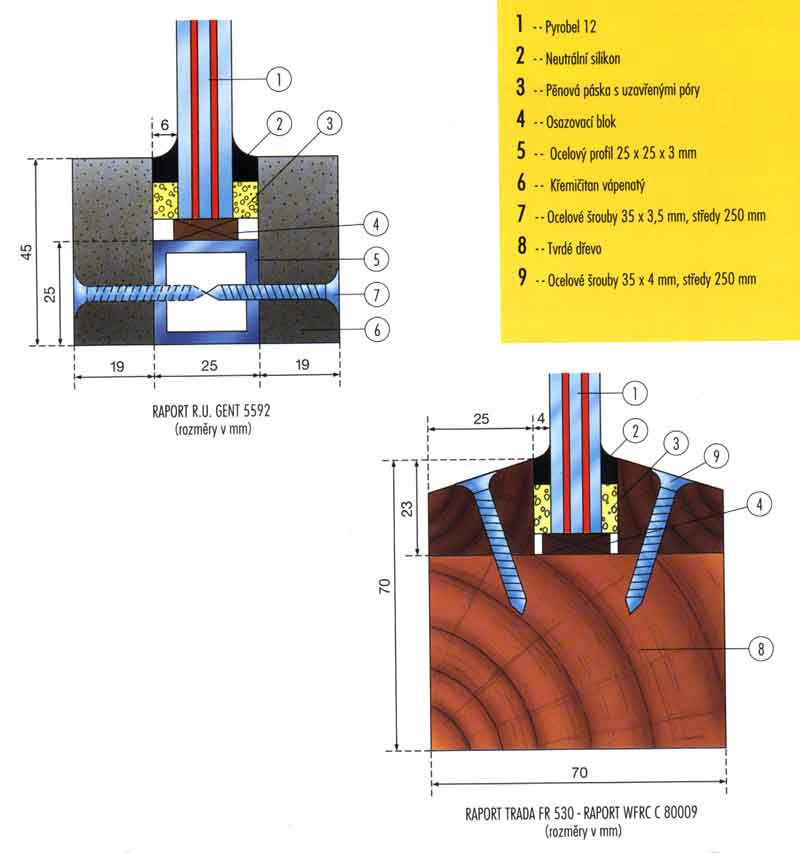 | Pyrobelite 21 | 60 minut zachování integrity | 60 minut nepřekročení mezních teplot | schéma | vlastnosti | testy | |