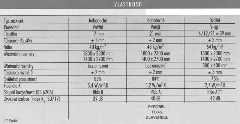 | Požární odolnost skel Pyrobel: | Informace: | |||||