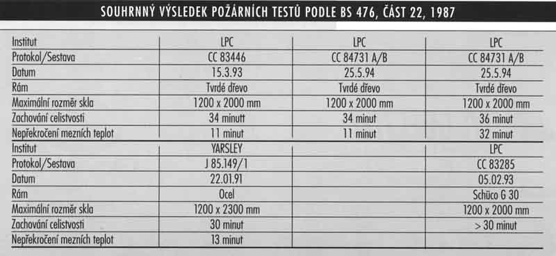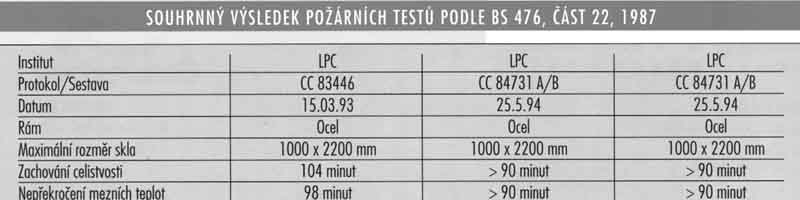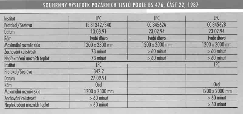 | Pyrobelite 12 | 45 minut zachování integrity | 30 minut nepřekročení mezních teplot | schéma | vlastnosti | testy | |